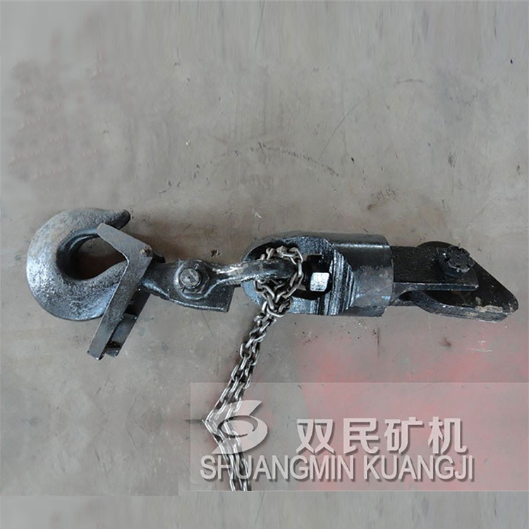 鉤頭及連接裝置,簡(jiǎn)稱為鉤頭裝置。 該產(chǎn)品結(jié)構(gòu)簡(jiǎn)單,使用性能單一。零件全部由鍛件加工而成,鋼絲繩連接采用了兩種型式,其中5t、7t采用不偏心護(hù)繩環(huán),板卡連接;9t