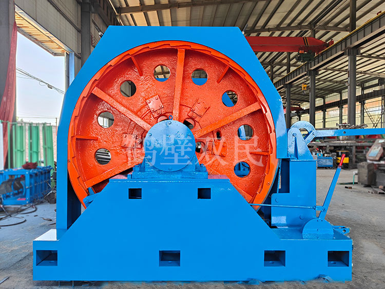 鑿井絞車主要用于煤礦、金屬礦和非金屬礦豎井井筒掘進時懸吊吊盤、水泵、水管、注漿泵、風筒等掘進設備和張緊穩(wěn)繩,該絞車系雙鋼絲繩懸吊。將減速機上的差動手把放在差動位置,若張緊穩(wěn)繩,可使兩根穩(wěn)繩的張緊力保持相等;若懸吊水管、注漿管、風筒等管類設備,可保證其被懸吊管類設備與地面保持垂直的狀態(tài)。如果懸吊吊盤等盤狀設備,需將其差動手把放在直通位置,才能實現(xiàn)兩繩繩速的一致。