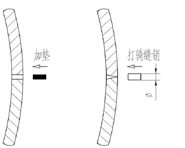 ①重 點檢查兩半卷筒的接合面部位是否出現(xiàn)縫隙。如果縫隙沿筒殼內外均勻,則可以從外側向縫隙填補薄鋼板,并將其固定牢靠;如果縫隙沿筒殼內外不均勻,一般是外側頂緊,造成貼緊的假象??梢詮耐鈧仍诮雍峡p部位打騎縫銷并可靠固定,將縫隙處撐緊。