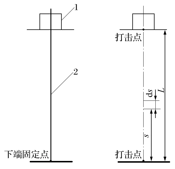 在井口附近位置,對罐道繩某一點(diǎn)施加一垂直沖擊力,使罐道繩產(chǎn)生橫向振動。振動波在鋼絲繩上的傳遞速度與鋼絲繩所受張力的關(guān)系如下: