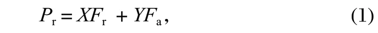 式中:Pr 為聯(lián)合載荷下軸承徑向當(dāng)量動載荷,N;Fr為軸承徑向動載荷,N;Fa 為軸承軸向動載荷,N。