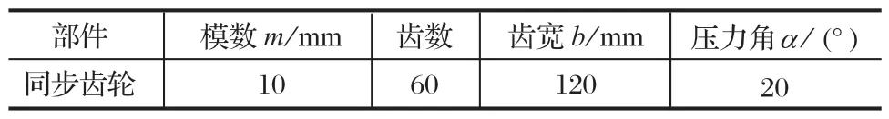 采用理論分析與有限元分析相結合的方法,對同步齒輪嚙合傳動進行研究。同步齒輪結構參數(shù)如表1所列。